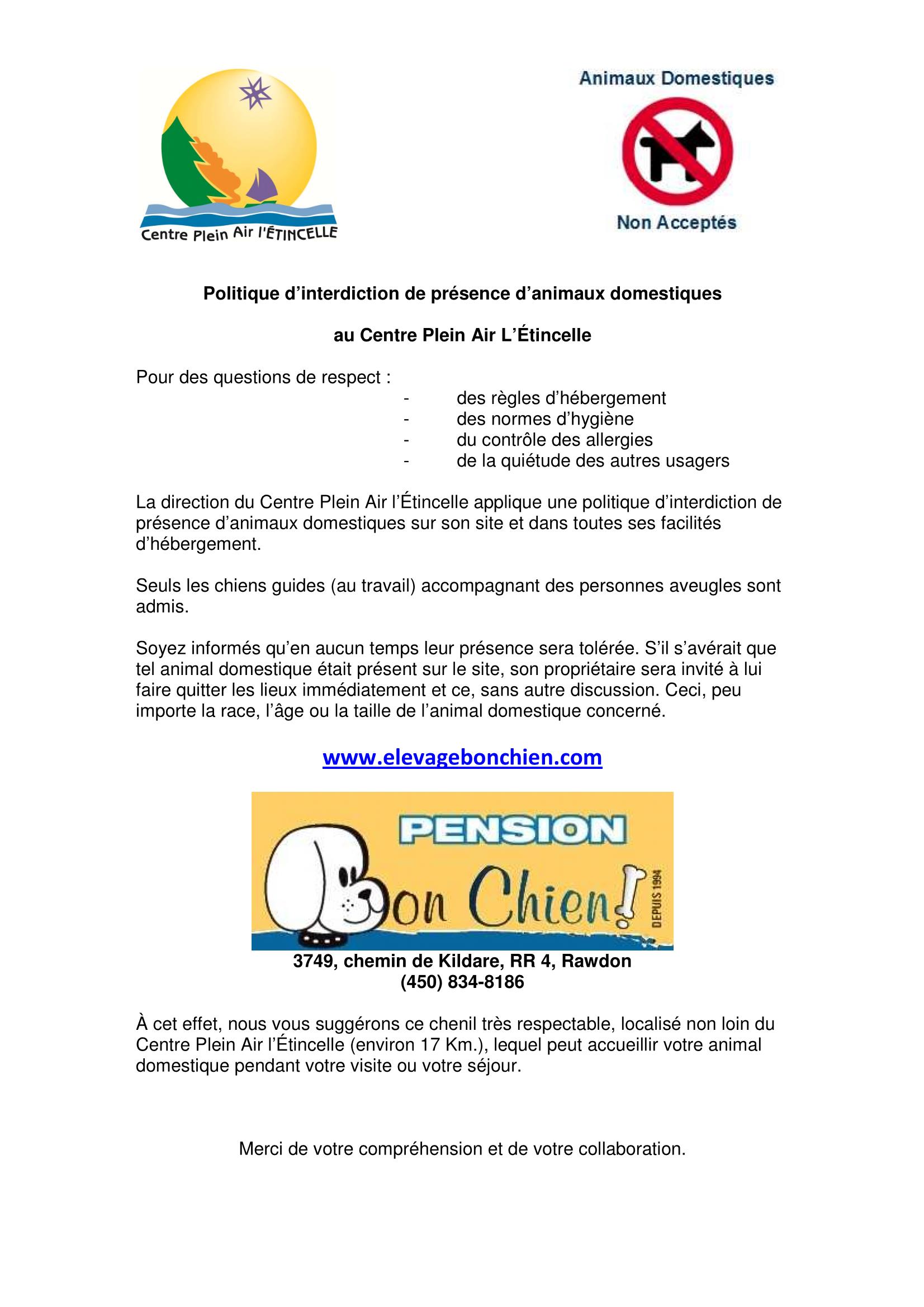 Politique d'interdiction d'animaux
