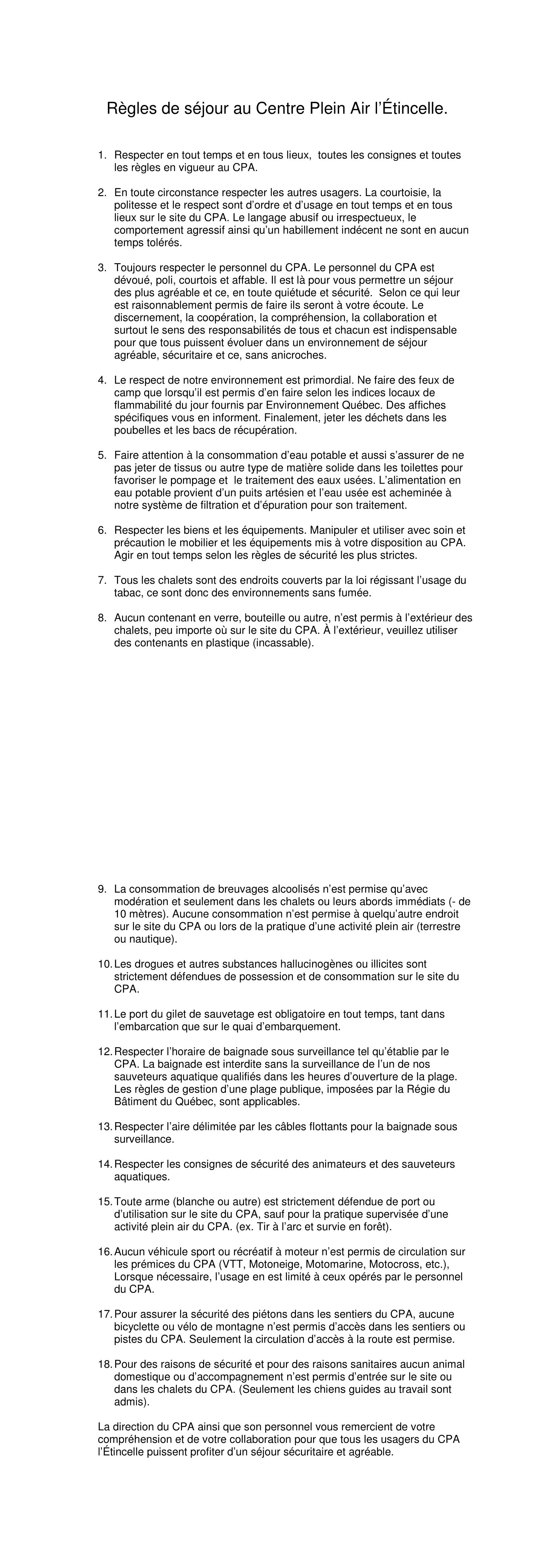 Règles de séjour